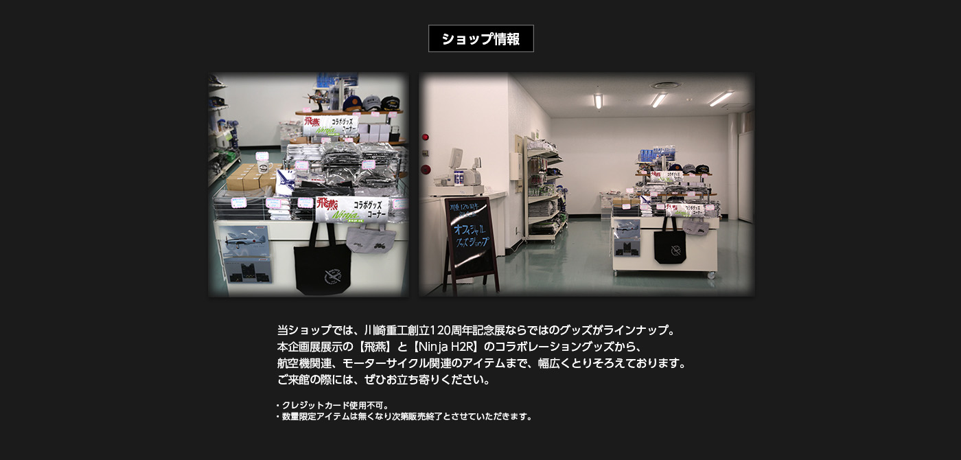 本記念展で、修復・復元が完了した「飛燕」をいちはやくご覧いただくとともに、Kawasaki最新のモーターサイクルNinja H2R/H2まで脈々と続く当社技術者たちの最速にかける熱い思いを感じていただければ幸いです。