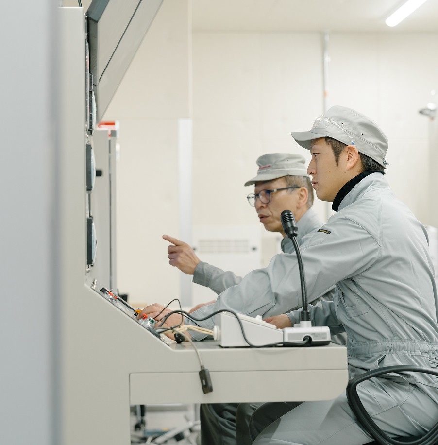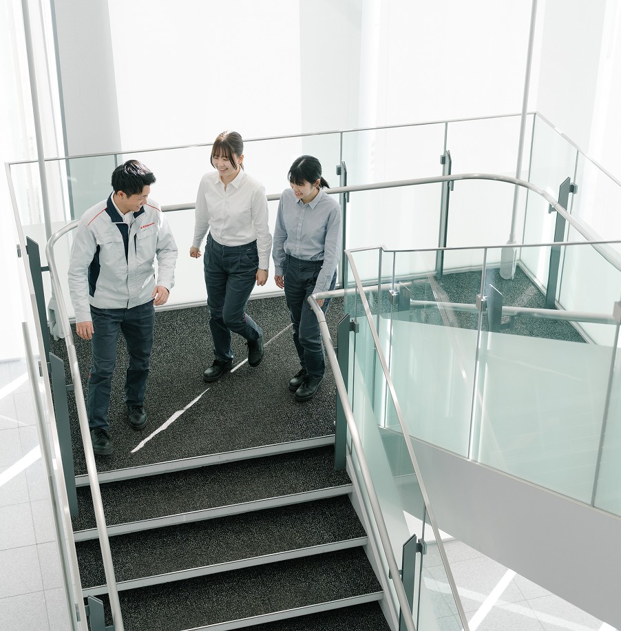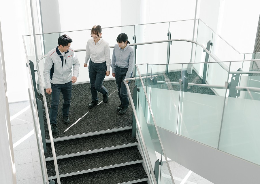 入社後の最初の2か月は、社会人としての考え方や振る舞い、会社のルールを学びながら、これから働く環境への理解を深める期間です。また、事業や仕事内容を体感できる現場実習も行います。現場実習は、配属の可能性がある部門(技術系・事務系で異なります)と合わせて生産職場での実習も行い、技術系・事務系問わず全員が参加します。生産職場での実習は、安全面を考慮し実作業は行いませんが、見学や簡単な作業を通して、仕事の流れや部署の役割を理解できます。また、配属後に関わる多くの社員との交流の機会にもなります。