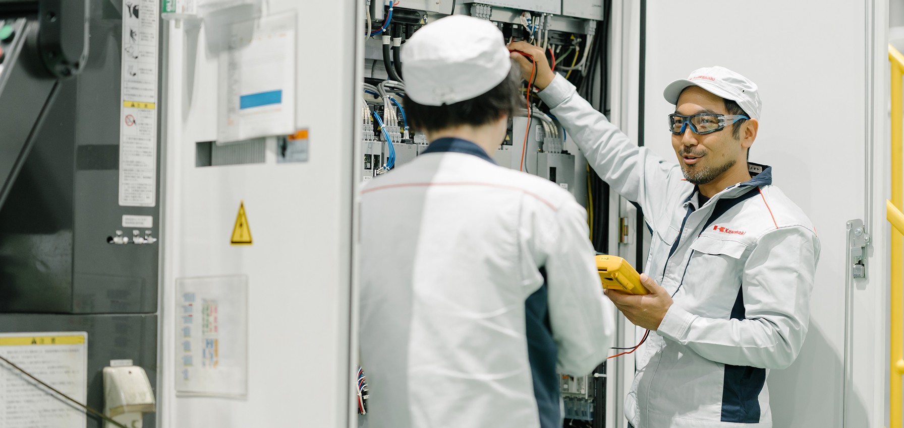 当社は川崎重工業の生産を支える製品・サービスを提供し、設計から納入後のメンテナンスまで一貫して手がけています。そのため、複数部門との連携や調整が不可欠。技術系職種は、多様なオーダーメイド製品に対応するため幅広い専門知識が求められ、事務系職種も業務理解には幅広い知識が必要となります。