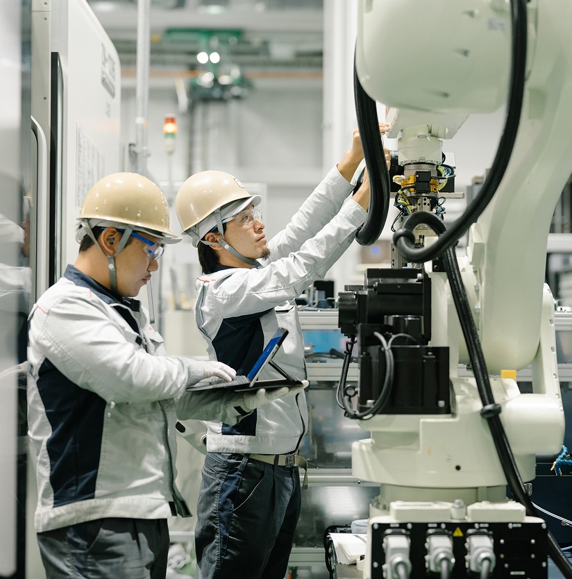 マシニングセンタや溶接機等の主要な生産設備だけでなく、工場建屋付随の天井クレーンや空調機等の設備も含め、幅広い設備に関わります。導入段階から稼働中、廃却・更新まで、設備のライフサイクル全体にわたり長期間活動するため、企業の収益改善にも貢献できる仕事です。近年は「壊れる前に整備する」「壊れにくくする」「壊れてもすぐに復旧できる」といった予防保全を強化しており、故障原因の解析・再発防止策の検討実施・設備の改造にも挑戦できます。機械・電気・情報等、工学系全般の知識を活かして、提案型で生産性の改善に取り組めるため成長の機会が多くあります。