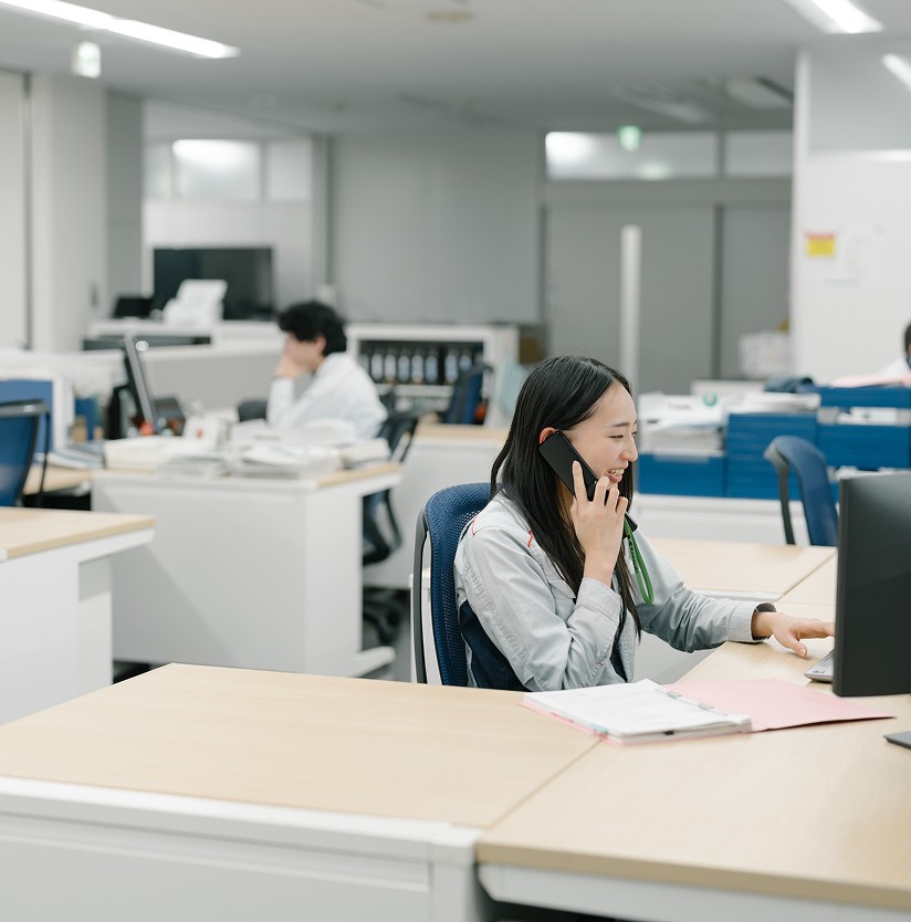 事務系職種は、会社の運営とものづくりを多方面から支える重要な役割です。社員が安心して働ける環境を整える人事・総務、経営の判断をお金の流れから支える管理・経理、既存のお客様や社内の各部門と連携してプロジェクトを前に進める営業、製品づくりに欠かせない部品や資材を調達する資材調達、ガスタービンの製造や整備の計画を立てて進捗を管理する生産管理等、活躍のフィールドは幅広く揃っています。それぞれの立場から現場とものづくりを支え、会社全体の成長に直結する手応えを感じられることが、この仕事の大きな魅力です。