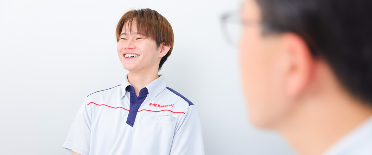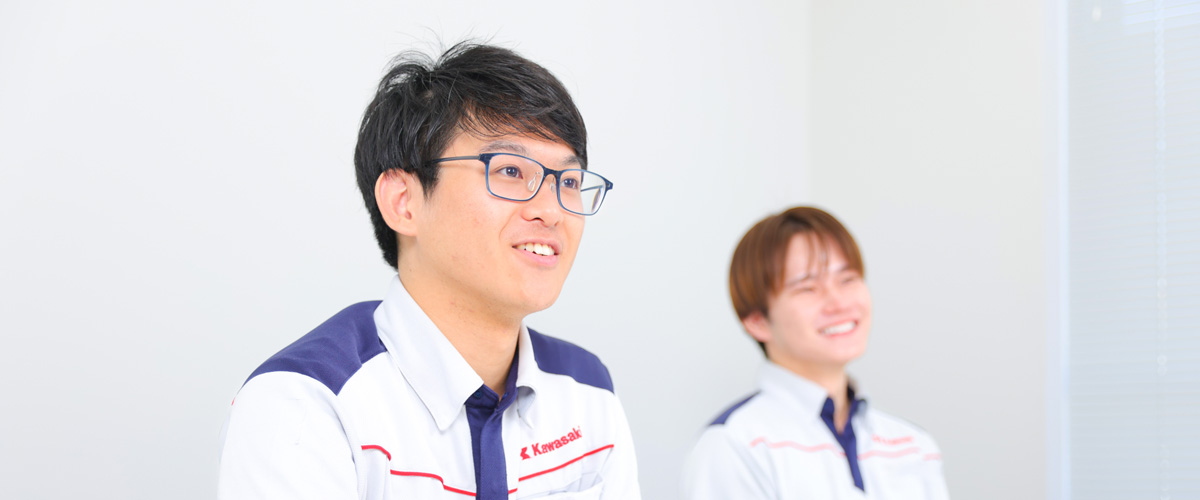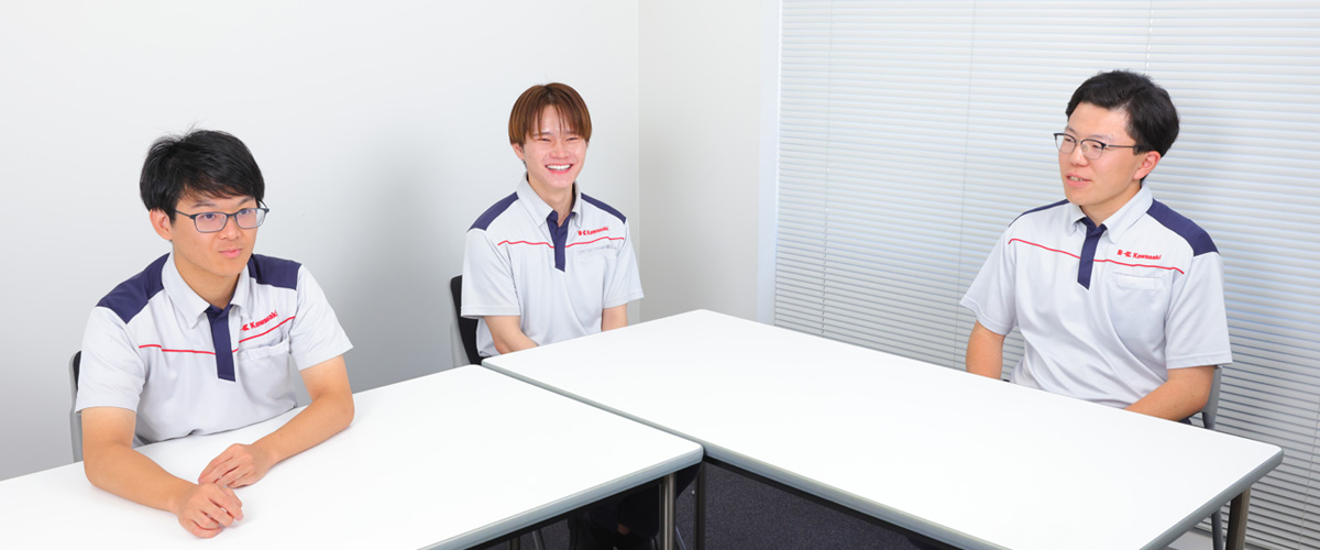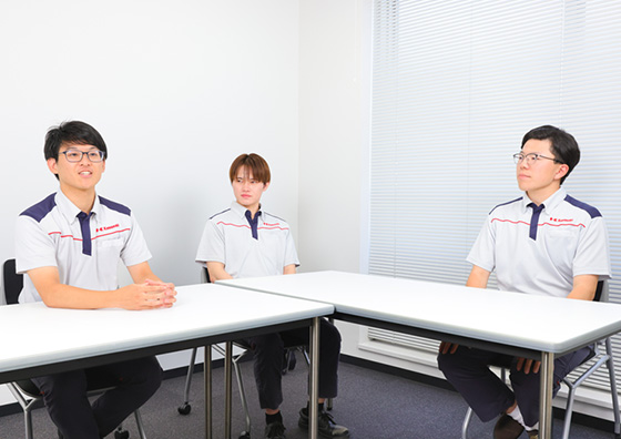 私は岐阜工業高校を卒業して2024年に入社しました。お2人の2年後輩にあたります。私は高校時代にメカトロニクスを学んでいて「保全の仕事に就きたい」と考えていたところ、KGEの求人票に「計測器材の保守点検」と記載されていて興味を持ちました。地元で知名度の高い川崎重工業グループであることも、KGEへの入社を決めた理由の一つです。