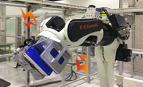 ロボット各部に、干渉などによる外傷がないか点検をしてください。特に手首部を注意して調べてください。