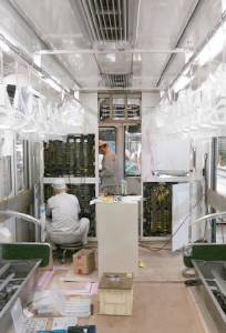 VVVFインバータ制御方式にリニューアルした事で機器の軽量化が達成され、総合的に環境に配慮した車両となりました。又、2002年には日本で初めて女性専用車両の終日実施を導入するなど、エンドカスタマーを1番に考えた取り組みをされているユーザーさまのもと、今回のリニューアル工事でも側引戸部に吊手が追加され、車両の更新だけでなくエンドカスタマーを常に考えながらリニューアル工事を実施しております。