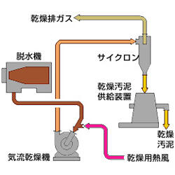 - 気流乾燥管を通過しサイクロンで捕集された乾燥汚泥は粉粒状であるため、ハンドリングが容易です。