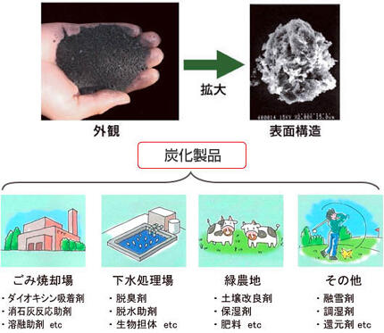 - 安全性:活性炭化製品は高温度域にて処理が施されているため、発火点の極めて高い安全な製品が得られます。
