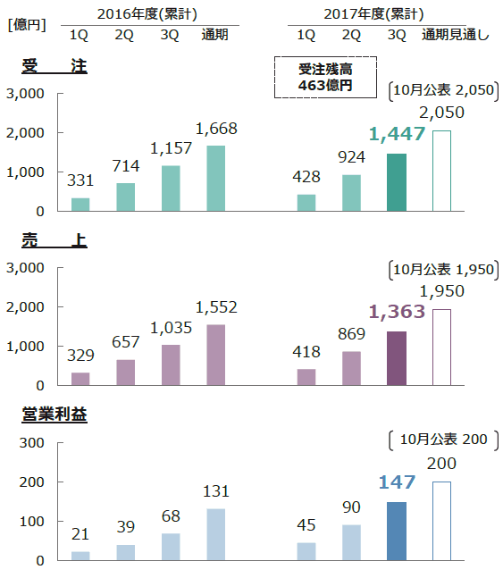 | 受注 | 前回から大きな変動は無く見通しを据え置き |