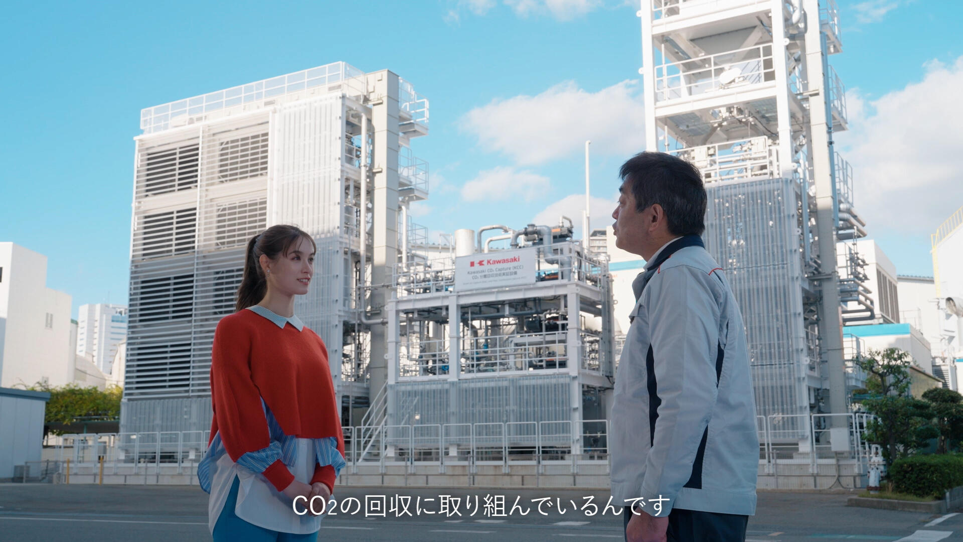 今回の『カワサキ水素大学』7限目「水素社会へ近づく技術」篇では、トラウデンさんが川崎重工の神戸工場を訪れ、CO₂を回収する2つの設備を見ながら、それらが水素社会への「カギ」であることを学びます。川崎重工のCO₂回収技術は、国内外の発電所で実証試験が行われています。また、回収したCO₂は水素と合わせて都市ガスや航空機用の合成燃料として利用することも考えられています。「水素社会へ近づく技術」である川崎重工のCO₂回収設備を本作でぜひご覧ください。